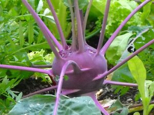 - Schäle den Kohlrabi und schneide ihn in feine Stifte oder rasple ihn grob.